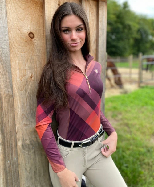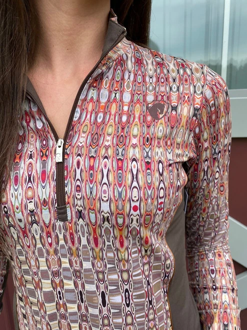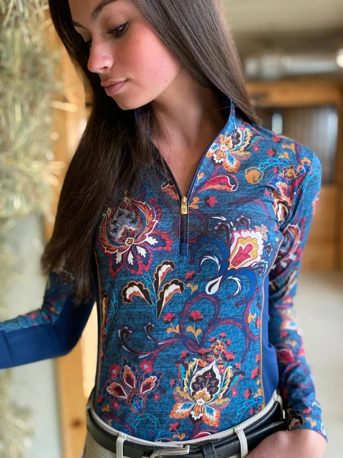 Arista Quarter Zip Long Sleeve Shirt in gorgeous Arista prints features high performance fabric and elegant details. Women’s UPF50 sun shirt has lots of stretch and super soft lightly brushed interior. The Brio-Tek fabric wicks moisture, dries fast, and is breathable. Arista Equestrian Quarter Zip print shirts are treated with an eco-friendly antimicrobial finish to inhibit odors.