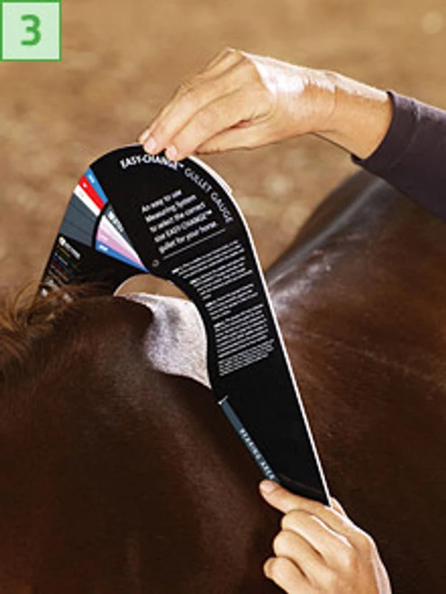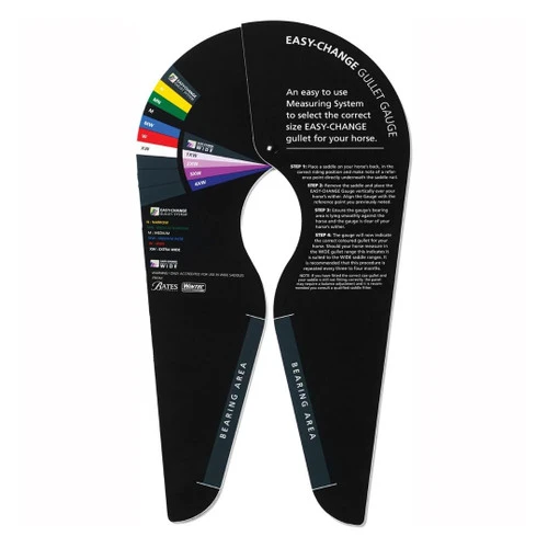 Use the Easy Change Gullet Gauge for your Bates or Wintec saddles. Follow the directions then select the correct gullet based on the measurements. This saddle measurement gauge works for both Bates and Wintec saddles with the Easy Change gullet.