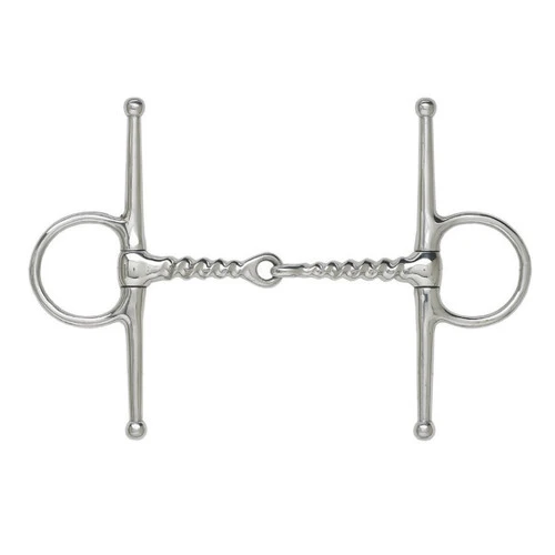 Stainless Steel Corkscrew Full Cheek Bit from Centaur is a single jointed snaffle bit with a tighter twist than a Slow Twist mouth, making it have a stronger impact on the horse’s tongue when reins are engaged. English full cheek bit with 6.5″ cheeks. We recommend using bit keepers for more stability with the full cheeks. Available in Sizes: 5 and 5.5.